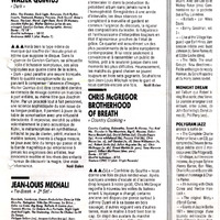- Photocopied article form the French newspaper Jazz Hot about the new recording of the Band Brotherhood of Breath "Country Cooking". Under the title, there is a list of the tracks to be found on the recording and a list of the players, then a short description of the band. There are also 2 other articles about other recordings, one about Joachim Kuhn Walter Quintus and the second one about Jean-Louis Mechali.
