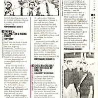 - Photocopied article about Chris McGregor's Brotherhood of Breath new LP "Country Cooking" amongst other new recordings by various bands. There are also 3 pictures accompanying the article showing the band Laibach (top), Yngwie's back from the dead with a winner (bottom left) and Intelligent wordplay from Microdisney (right).
