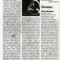 - Photocopied article in French about the reissue of the recording of Chris McGregor's "Thunderbolt" with his exiled friends from Blue Notes and British improvisers. There is also a picture of the CD's front cover with this article.