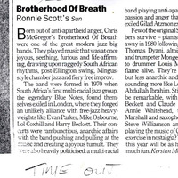 - Photocopied article from Time Out London about the origins, the evolution and the musical influences of Brotherhood of Breath.