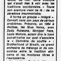 - Photocopied article from the French newspaper Le Monde about a concert by Chris McGregor's Blue Notes in Angoulême.