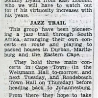 - Photocopied article from the South African newspaper Cape Argus about Chris McGregor's Blue Notes upcoming concerts in Cape Town. There is a portrait of Chris McGregor accompanying this article.