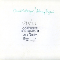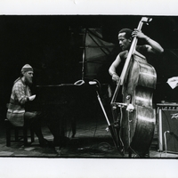 - Black and white photo (front and back) of Chris McGregor (Piano) and Johnny Dyani (Double Bass) performing.