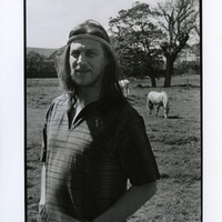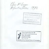 - Black and white photo (front and back) of Chris McGregor posing outside with cows in the background, in Alfriston, Sussex (England) in 1972.