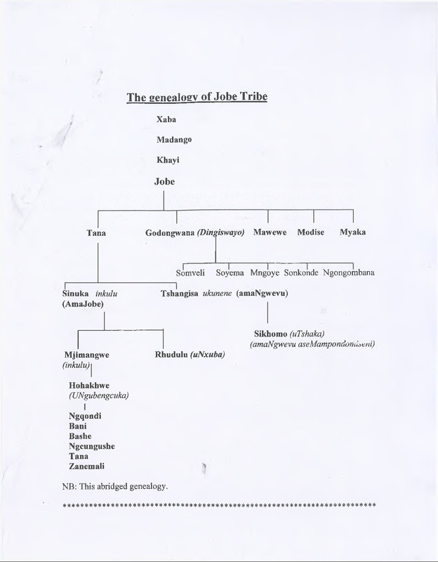 - A genealogy of the Jobe Tribe drafted by Chief Zanemali Bani
