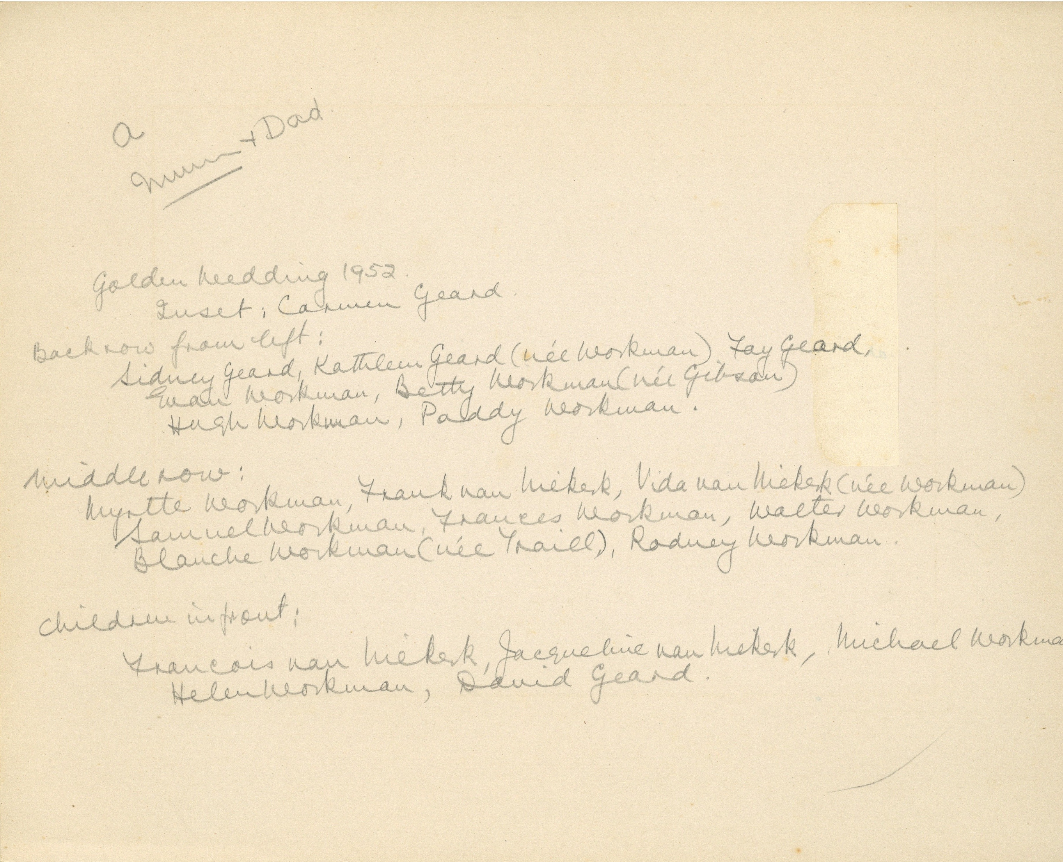 “Writing on the back of a golden wedding group photo”, Cory Library and Historical Archives, accessed 29 December 2025, https://digitalarchives.ru.ac.za/s/cory/item/4514