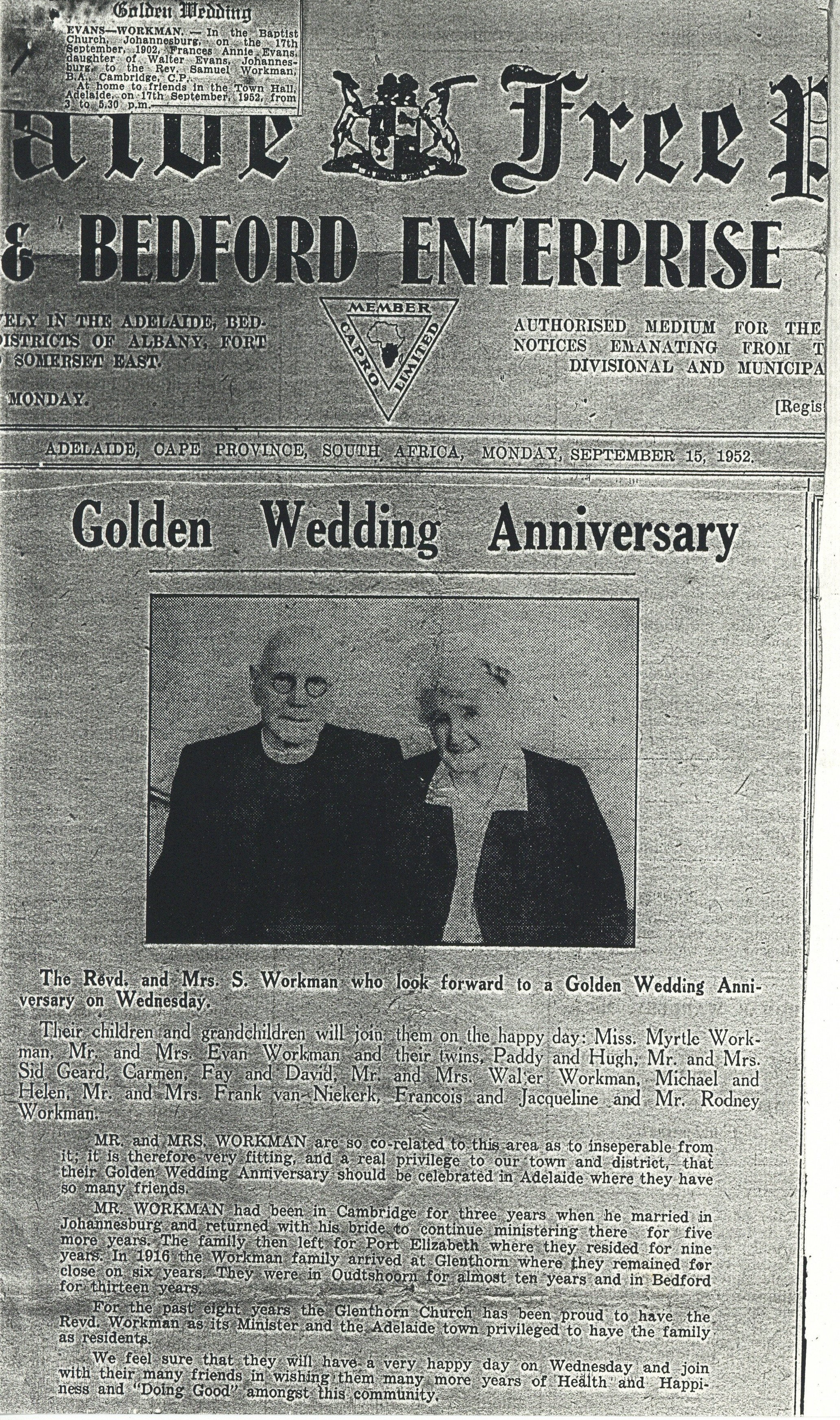 “Samuel and Frances Workman featured in a newspaper article "Golden Wedding Anniversary"”, 1952, Cory Library and Historical Archives, accessed 28 December 2025, https://digitalarchives.ru.ac.za/s/cory/item/4726