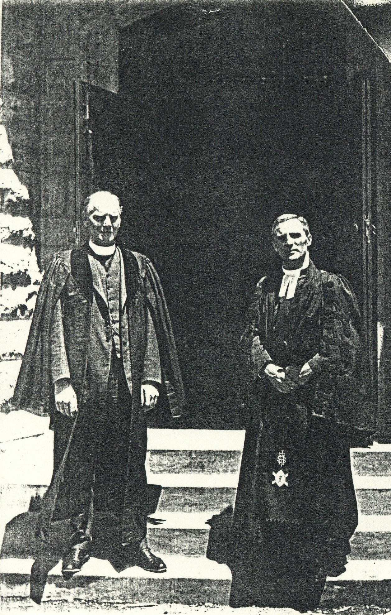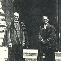 - Photograph of Samuel Workman and presumably Dr. E. McMillan outside the Outschoorn Presbyterian Church at the opening in December 1923.