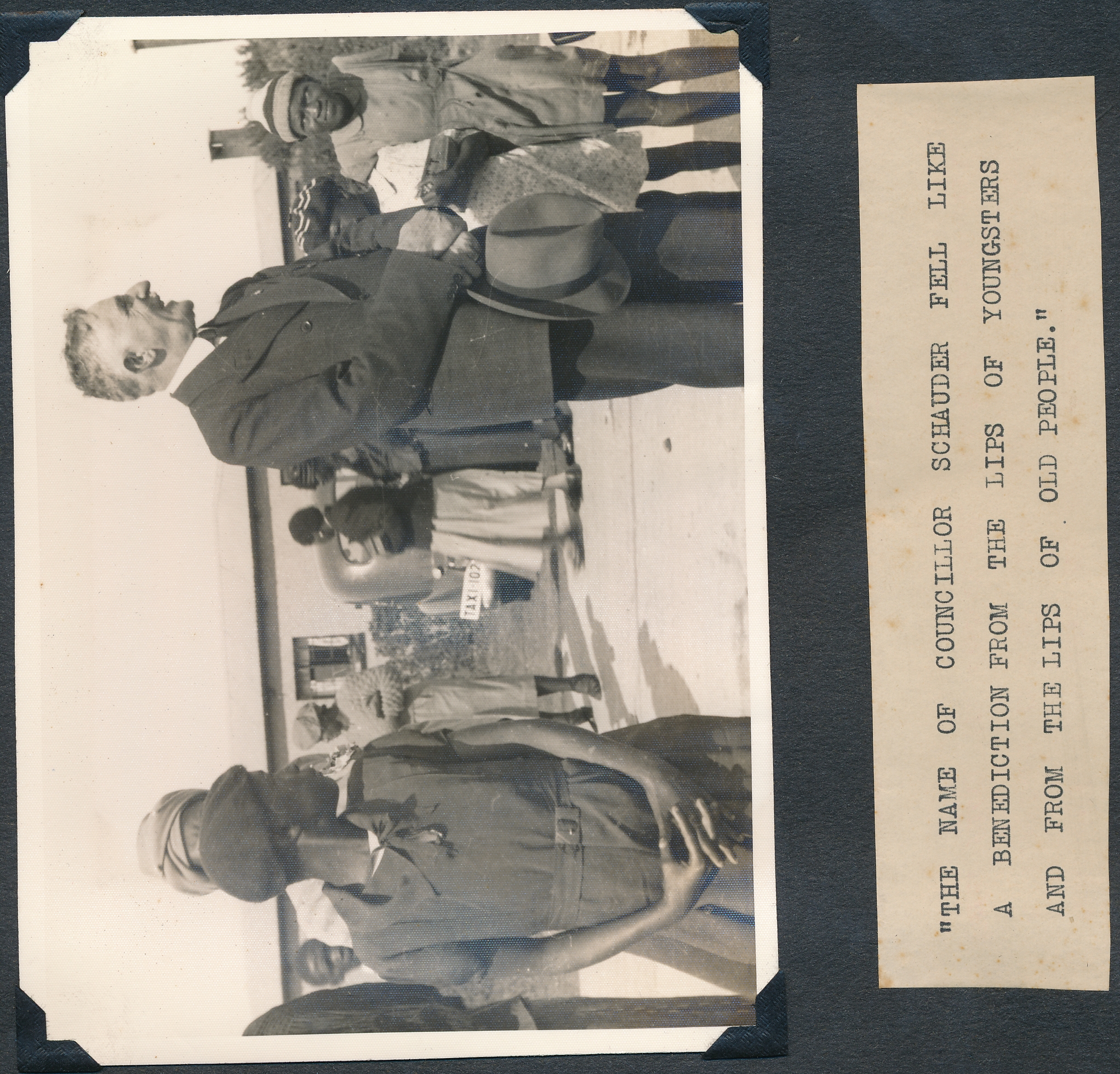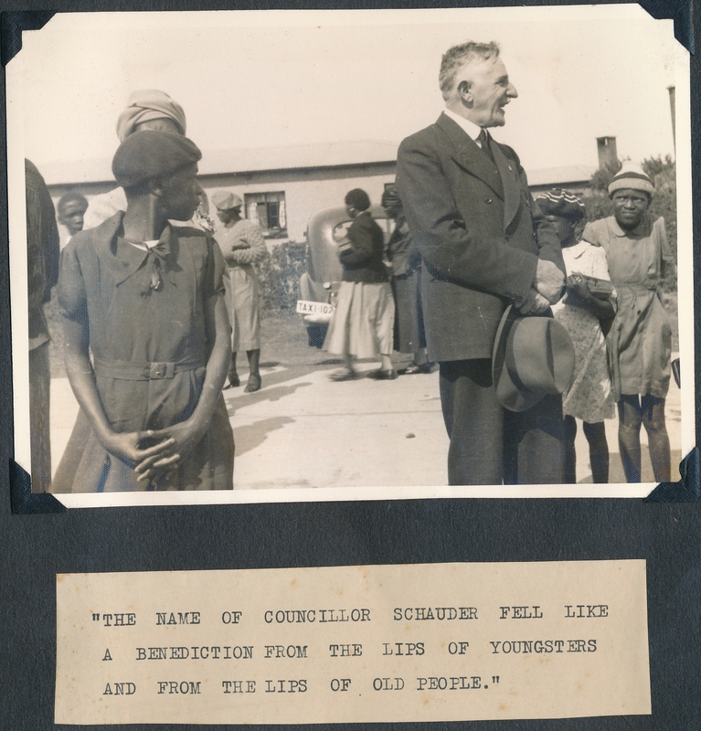 - Caption reads: "The name of councillor Schauder fell like benediction from the lips of youngsters and from the lips of old people."