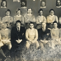 - Albany Nomads Rugby Club 1978. Team photograph with rugby/football players, in rugby uniform, Group photograph, Black and white photograph, Indoor photograph, Two men in suits, Players standing at back have arms crossed while players sitting in front have hands in lap, Back Row (left to right): R. Snow, C. Challis, B. Carlson, F. Maritz, A. Bradfield, A. Wakeford, K. Louw, Front Row (left to right): E. Spring, L. Rudman, T. Kyriacos, W. L. Fourie, A. Crouse, R. Coetzee, D. Pohl, Insets (left to right): C. Parsons, A. le Roux, L. Erasmus, B. Bester, P. Court, P. le Roux.