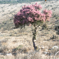 - A lone Spekboom standing in what must have been good Valley Bush Thicket in its heyday. Note the contrast of good bushiness in the far background. Note too, how the Spekboom has been eaten clean to the limits of a goats reach.