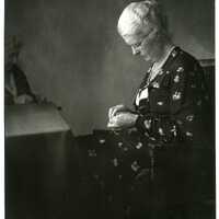 - Glass negative : Two views of an unidentified woman knitting, possibly Cape Town, December 1936.