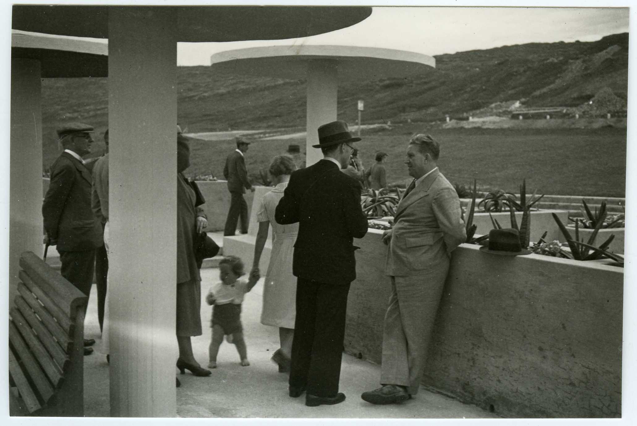 - Negatives : Five views showing unidentified people: a-b. people seated in a circle listening to a speaker; c. people talking on a verandah; d-e. smartly dressed people standing in front of a doorway with the inscription E.P.S.A. & C. Arts Hall MCMXXVII.
