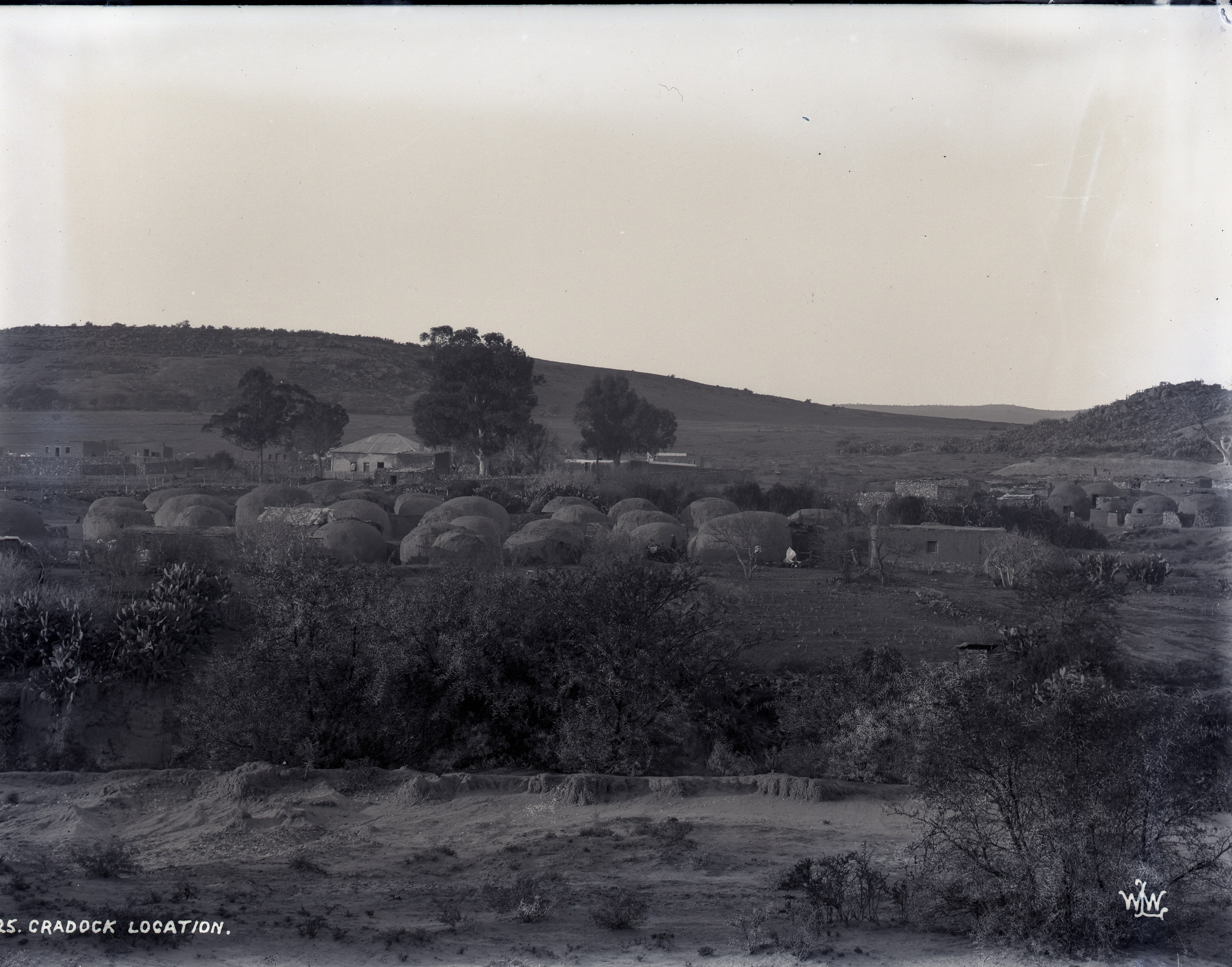 - Glass negative : View of the Cradock location from the bank of the Fish River.
