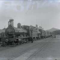 Cape Government Railways (CGR) engine, 6th Class, at Cradock station, 1900