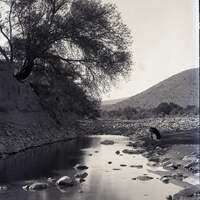 - Glass negative : View of a tree overhanging a pool in the Fish River, taken at Scanlen, near Cradock, October 1902.