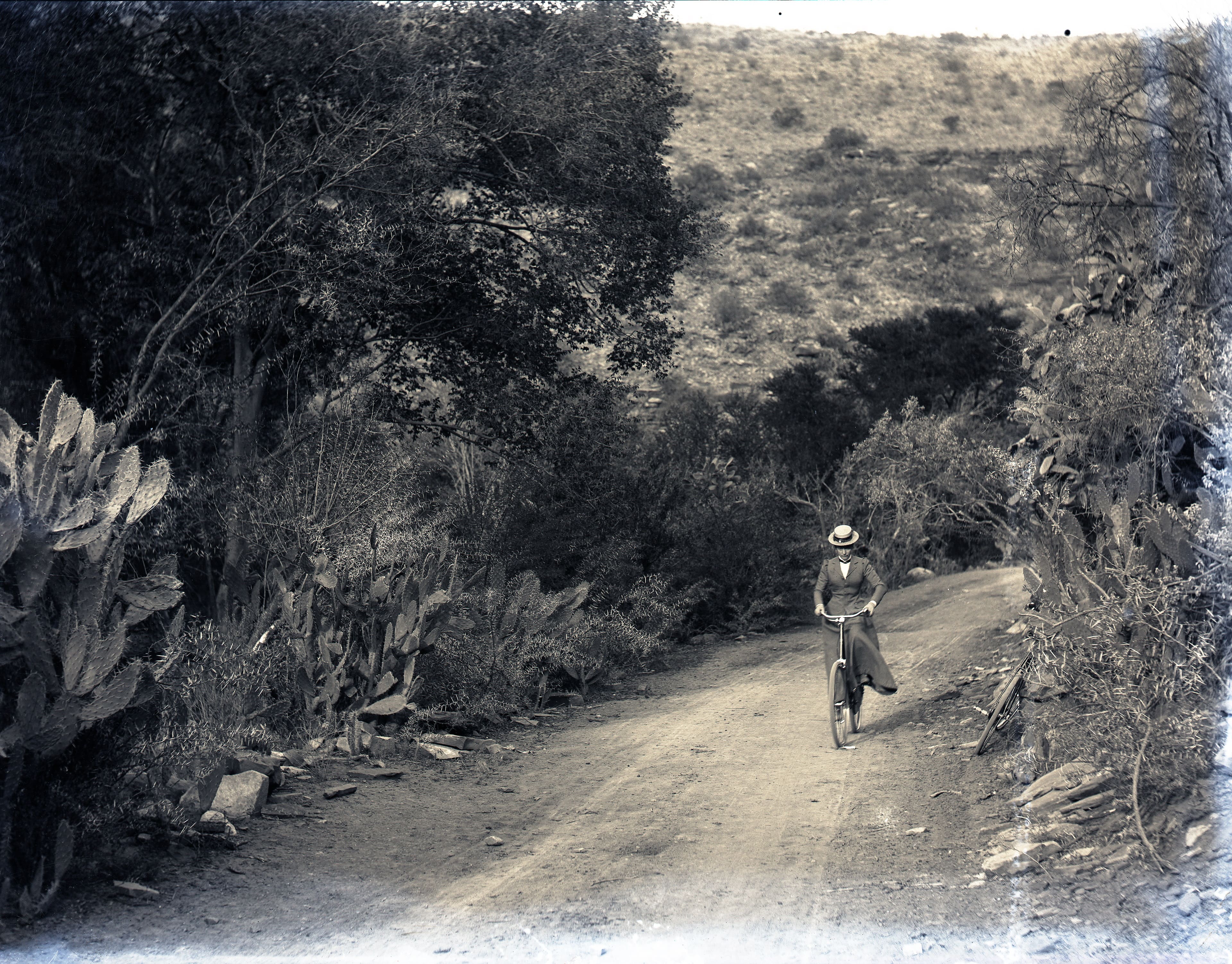 Lidbetter, William Walpole, “View of a woman riding a bicycle on a farm road at "Paradise", near Cradock, Whitsun 1903”, Cory Library and Historical Archives, accessed 29 December 2025, https://digitalarchives.ru.ac.za/s/cory/item/5484