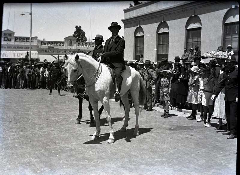 - Negatives : Four views of General Jan Smuts on a visit to Cradock, 10 November 1932: three showing him mounted and one in which he is pinning a medal onto an unknown man. A fifth negative is a copy of a photo showing Smuts and two other men taken during the South African War, 1899-1902.