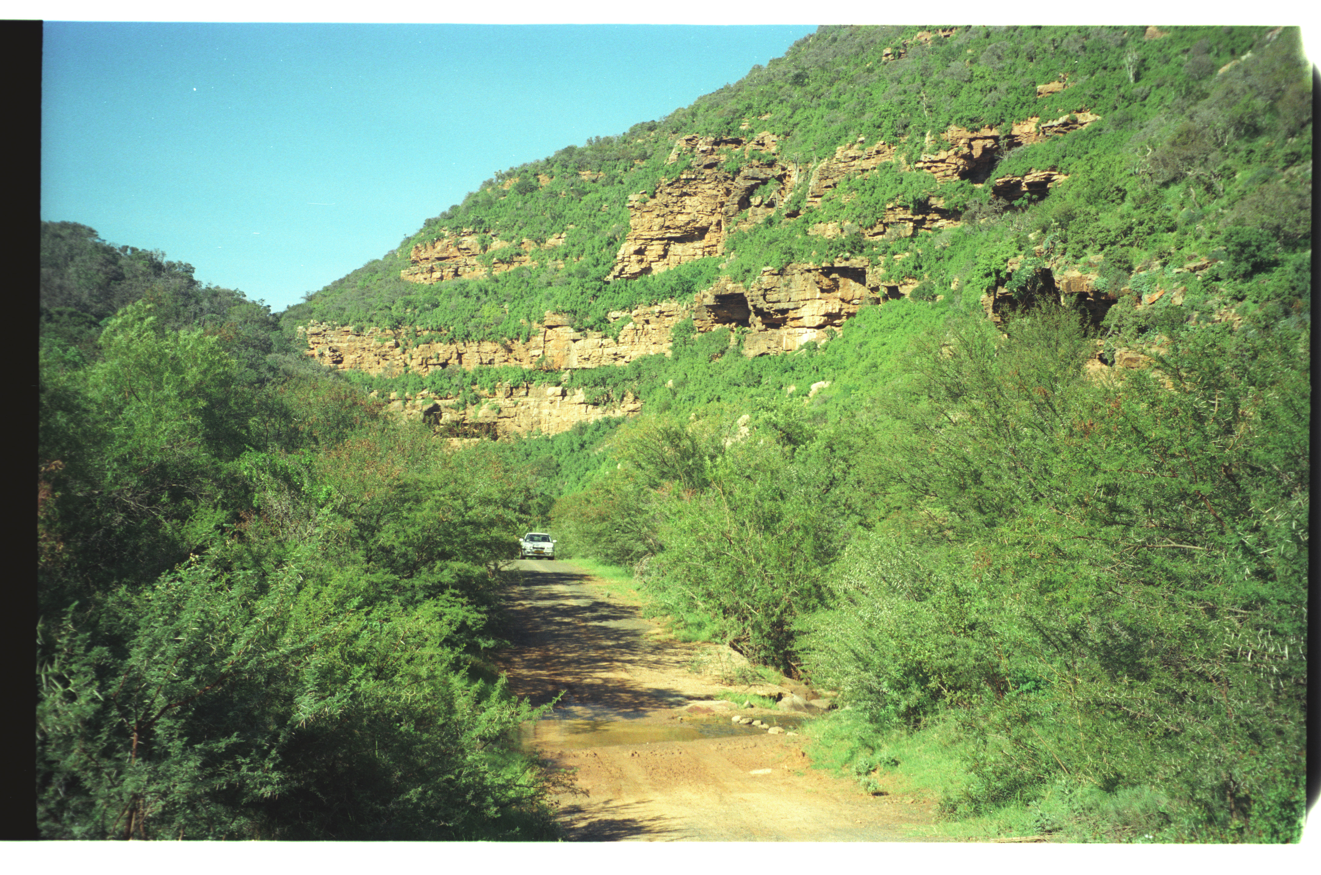 Skead, C. J. (Cuthbert John), “Road through Swartwaterspoort in the Swartwatersberg, 50km west of Grahamstown, Albany”, 1998-04-27, Cory Library and Historical Archives, accessed 31 December 2025, https://digitalarchives.ru.ac.za/s/cory/item/553