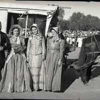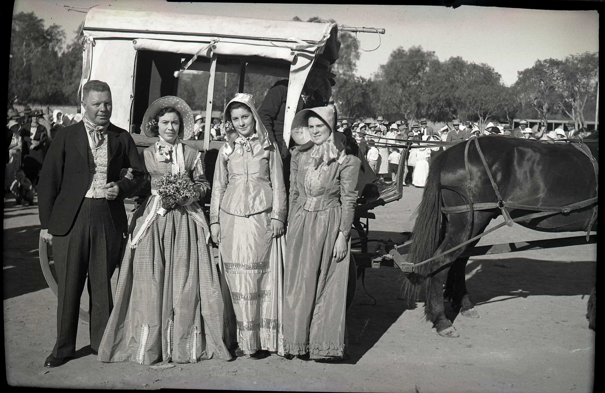 - Negatives : Twenty five views of unidentified individuals and crowds, some dressed in Voortrekker clothing, attending a service, and posing with ox wagons and carriages. Original holding envelope marked 'Voortrekkers Sept. 1938'.