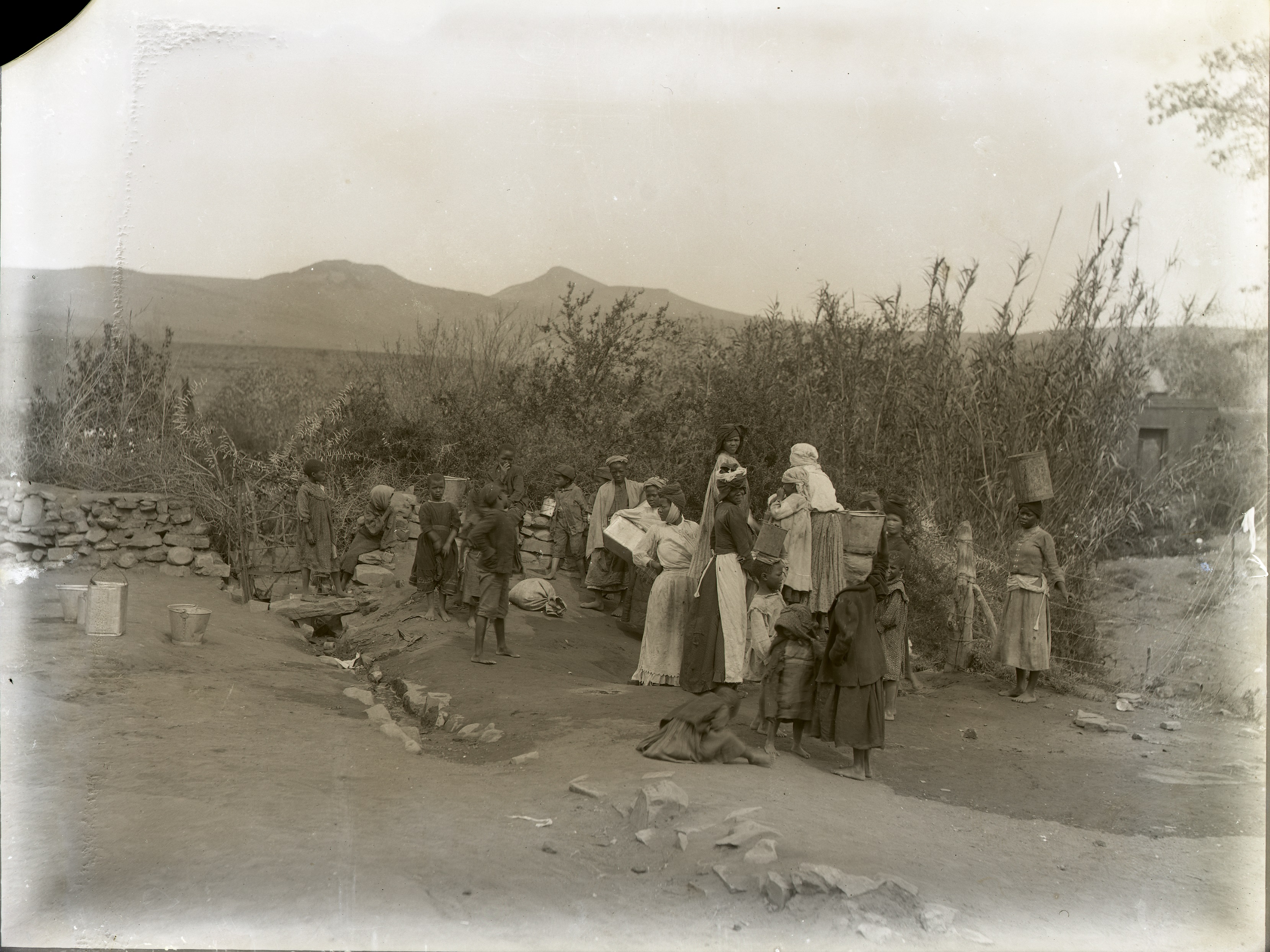 Lidbetter, William Walpole, “Women and children at the Location pump, Cradock, 28 September 1904”, Cory Library and Historical Archives, accessed 29 December 2025, https://digitalarchives.ru.ac.za/s/cory/item/5538