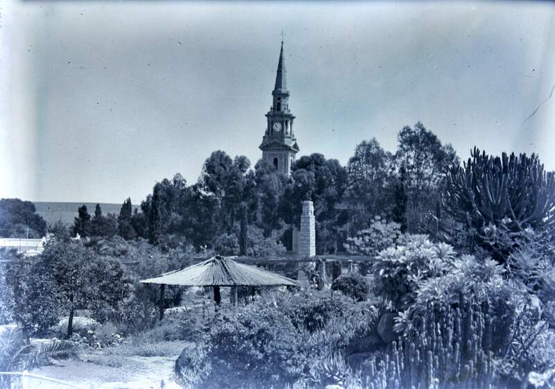- Negative : Two views of the Karoo Garden, Cradock, including one of the Lily Pond, with the Dutch Reformed Church in the background, taken in 1944