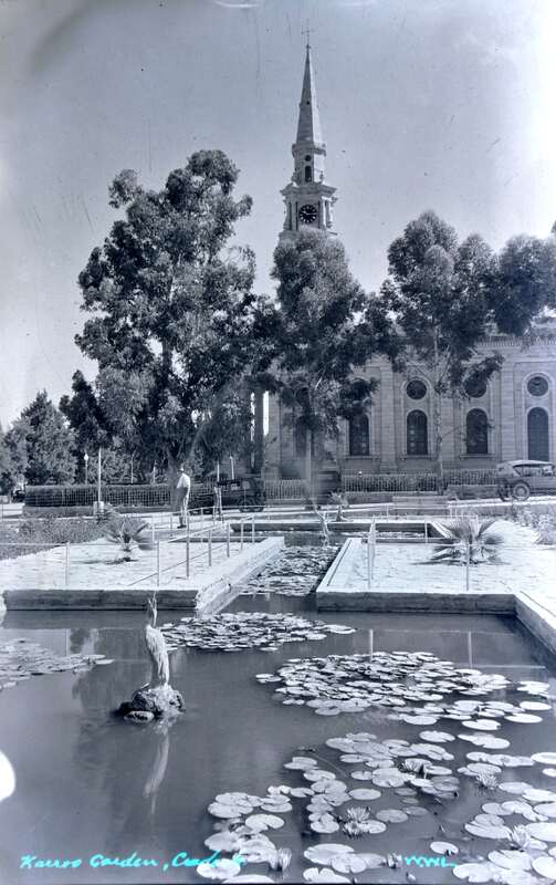 - Negative : View of the Lily Pond, Karoo Garden, Cradock, 29 March 1934, with the Dutch Reformed Church in the background.