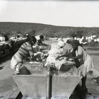 - Negatives : Two views showing women doing washing at the new wash troughs, 27 July 1931.