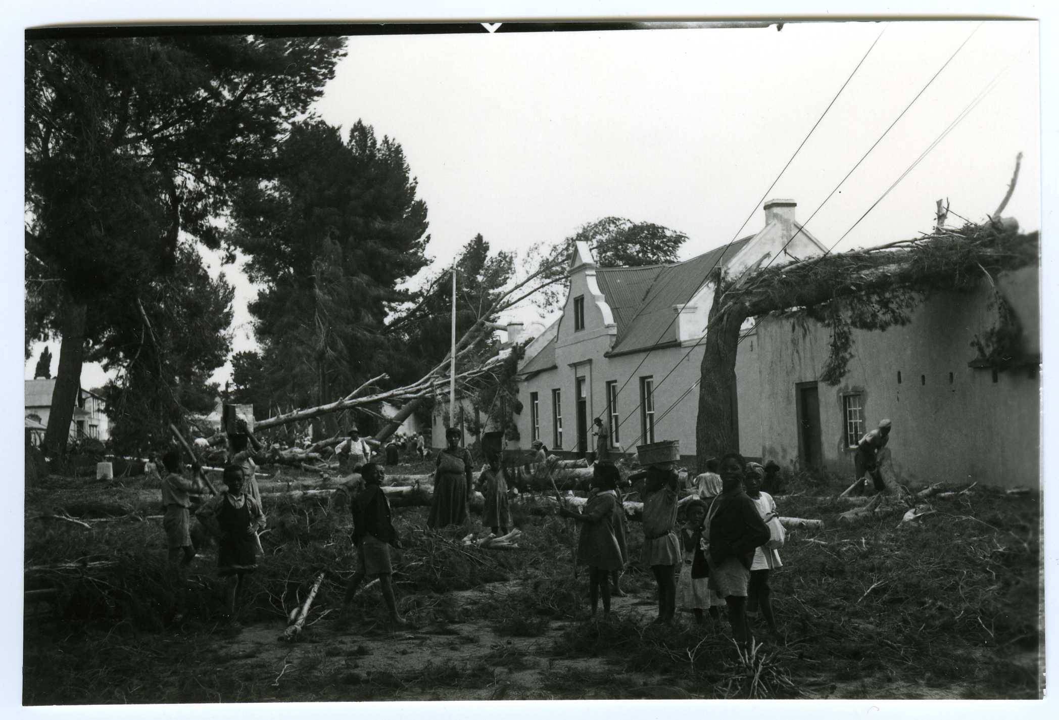 - Glass negative : Fourteen views of storm damage in Bree Street, Cradock, 5 March 1937, showing uprooted trees, buldozers clearing debris, and onlookers surveying the damage.