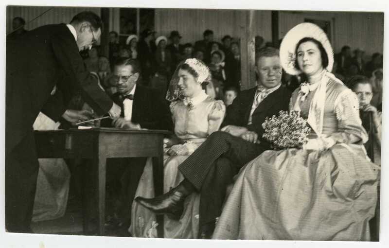 - Glass negative : Twenty five views of unidentified individuals and crowds, some dressed in Voortrekker clothing, attending a service, and posing with ox wagons and carriages.