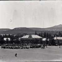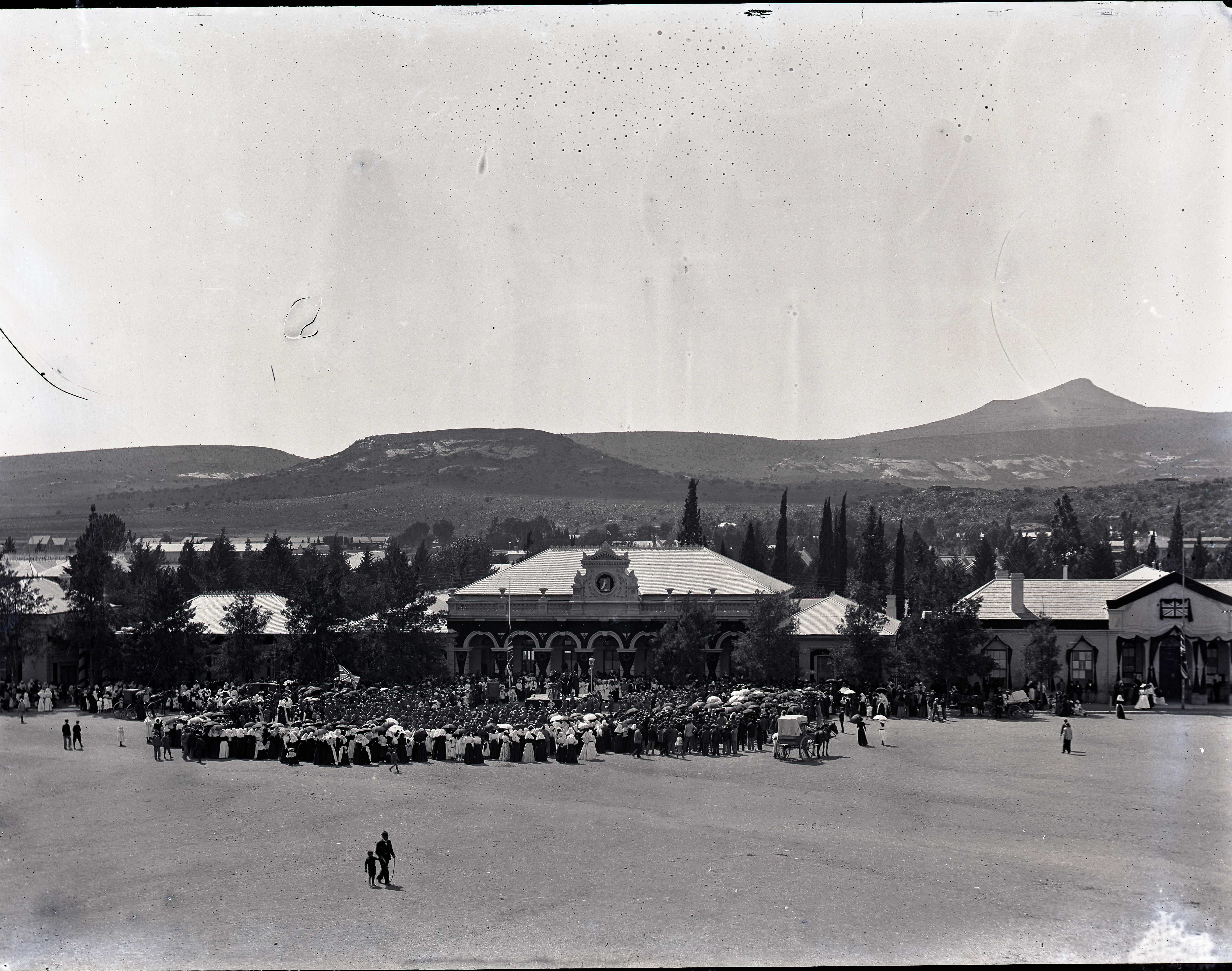 - Glass negative : View of the crowd on Market Square, Cradock, for Queen Victoria's memorial service, 1901.