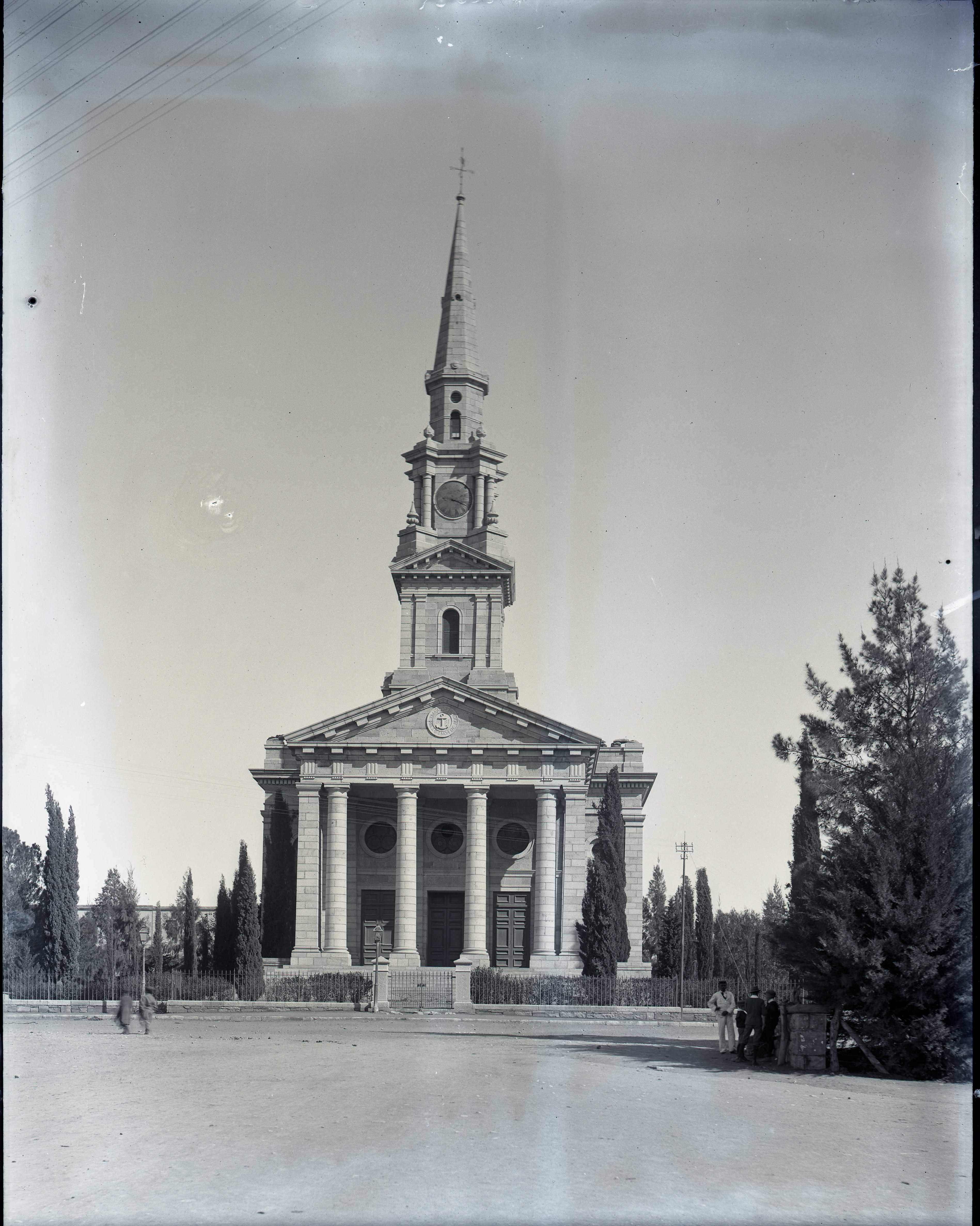- Glass negative : View of the Dutch Reformed Church taken from Steven's corner, showing the front of the building, Cradock, 19 September 1901.