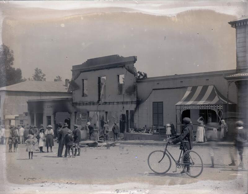 - Glass negative : Views of a crowd watching the fire at George H. Byrnes & Co., Saddlers and Harness makers, Cradock.