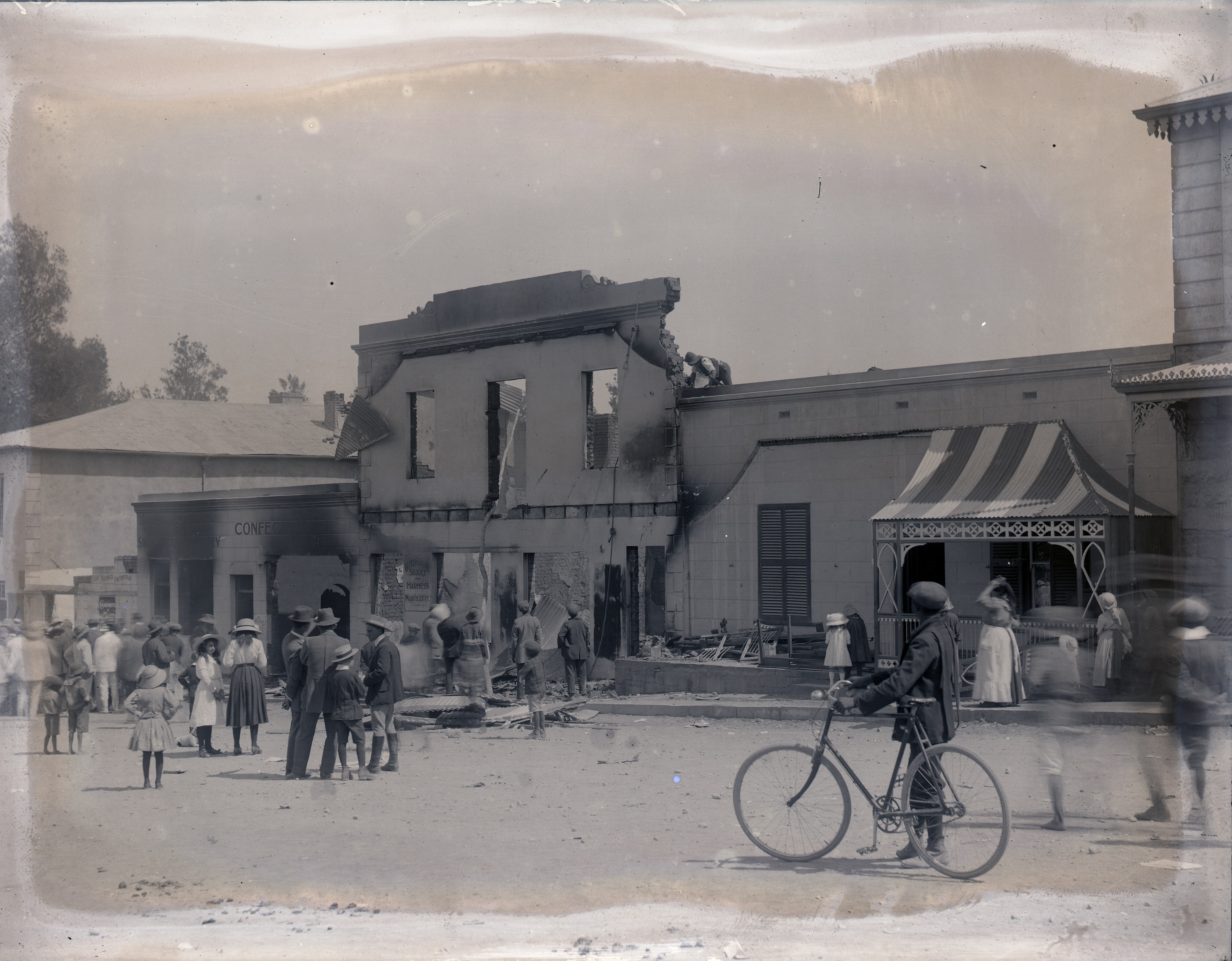Lidbetter, William Walpole, “Crowd watching the fire at George H. Byrnes & Co., Saddlers and Harness makers, Cradock”, Cory Library and Historical Archives, accessed 28 December 2025, https://digitalarchives.ru.ac.za/s/cory/item/5623