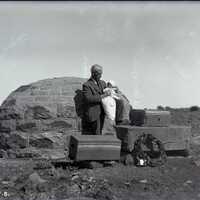 - Glass negative : View of Samuel Cronwright-Schreiner holding baby Maria Cronwright van Dijk in front of the sarcophagus on Buffelskop, 13 August 1921. The coffins of Olive Schreiner, her baby and her dog Nita, are visible. The negative is marked "Copyright. 5".