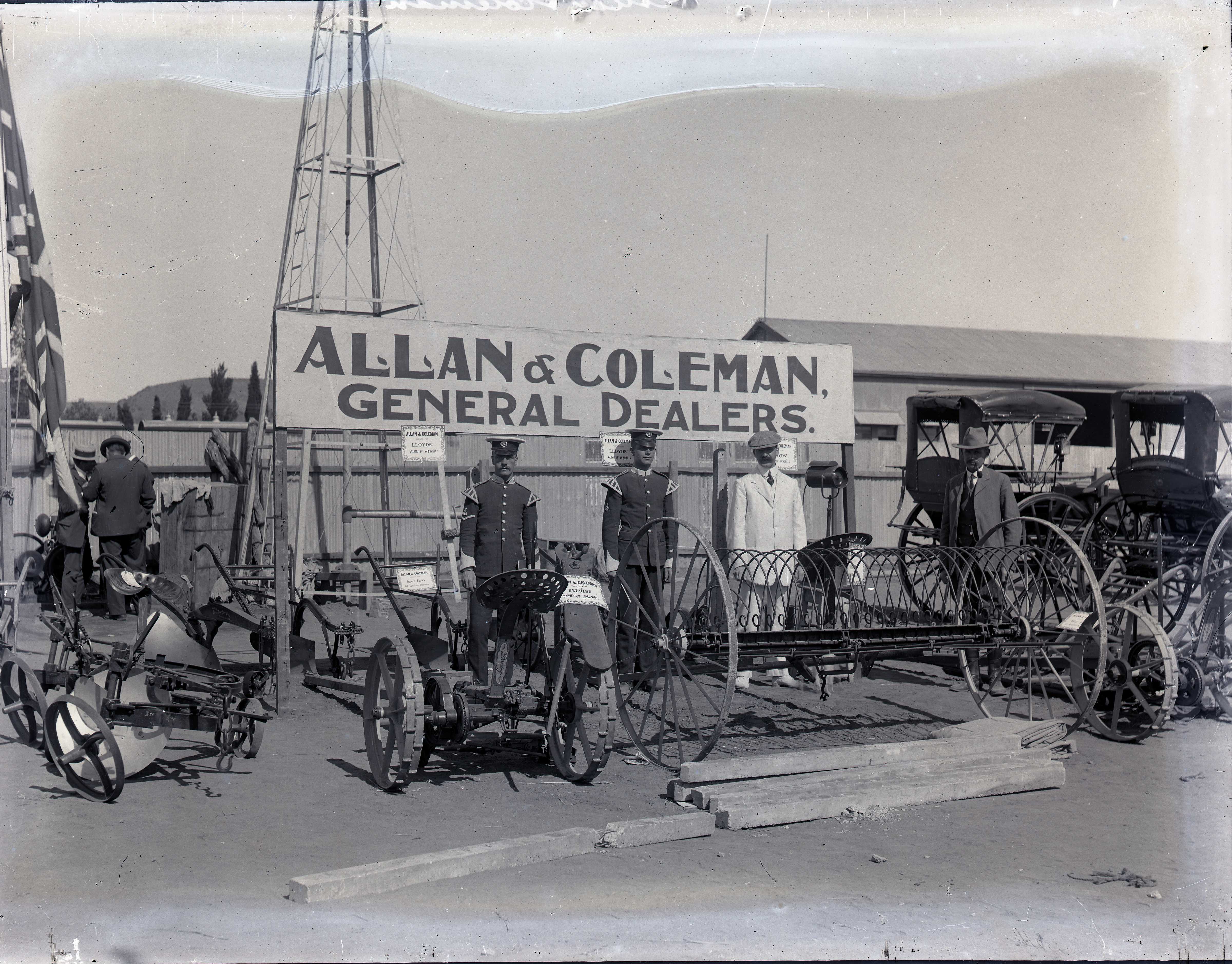 - Glass negative : View of the rear of Allan & Coleman, General Dealers, Cradock, circa 1906, showing agricultural implements and carriages.