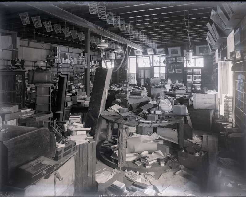 - Glass negative : Views of the interior of Butler Bros., booksellers, stationers and importers, Cradock, possibly showing flood damage as the pictures show great confusion and mess.