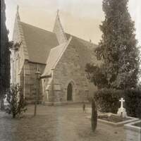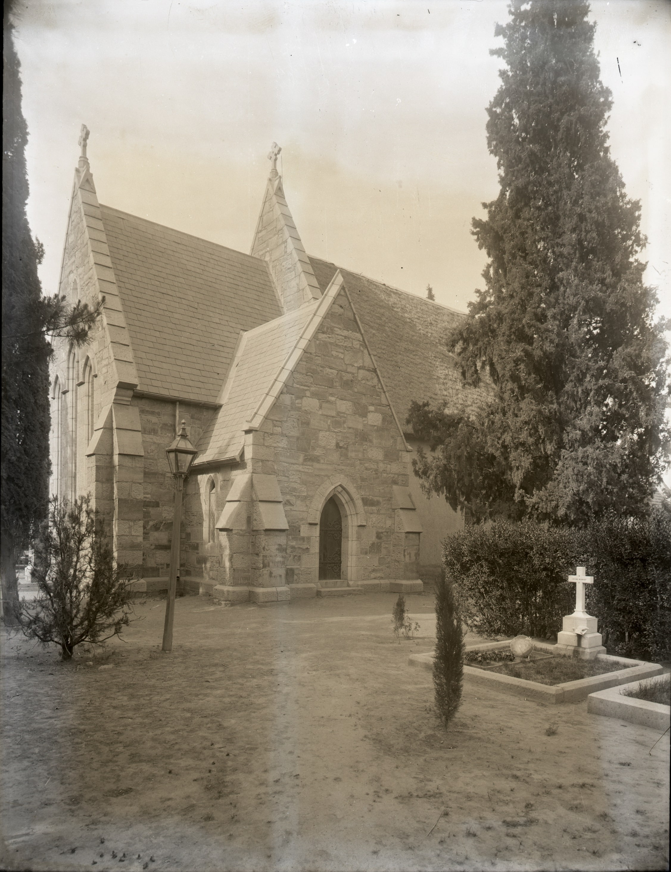 - Glass negative : View of St. Peter's Church, Cradock, with a grave in the foreground.