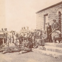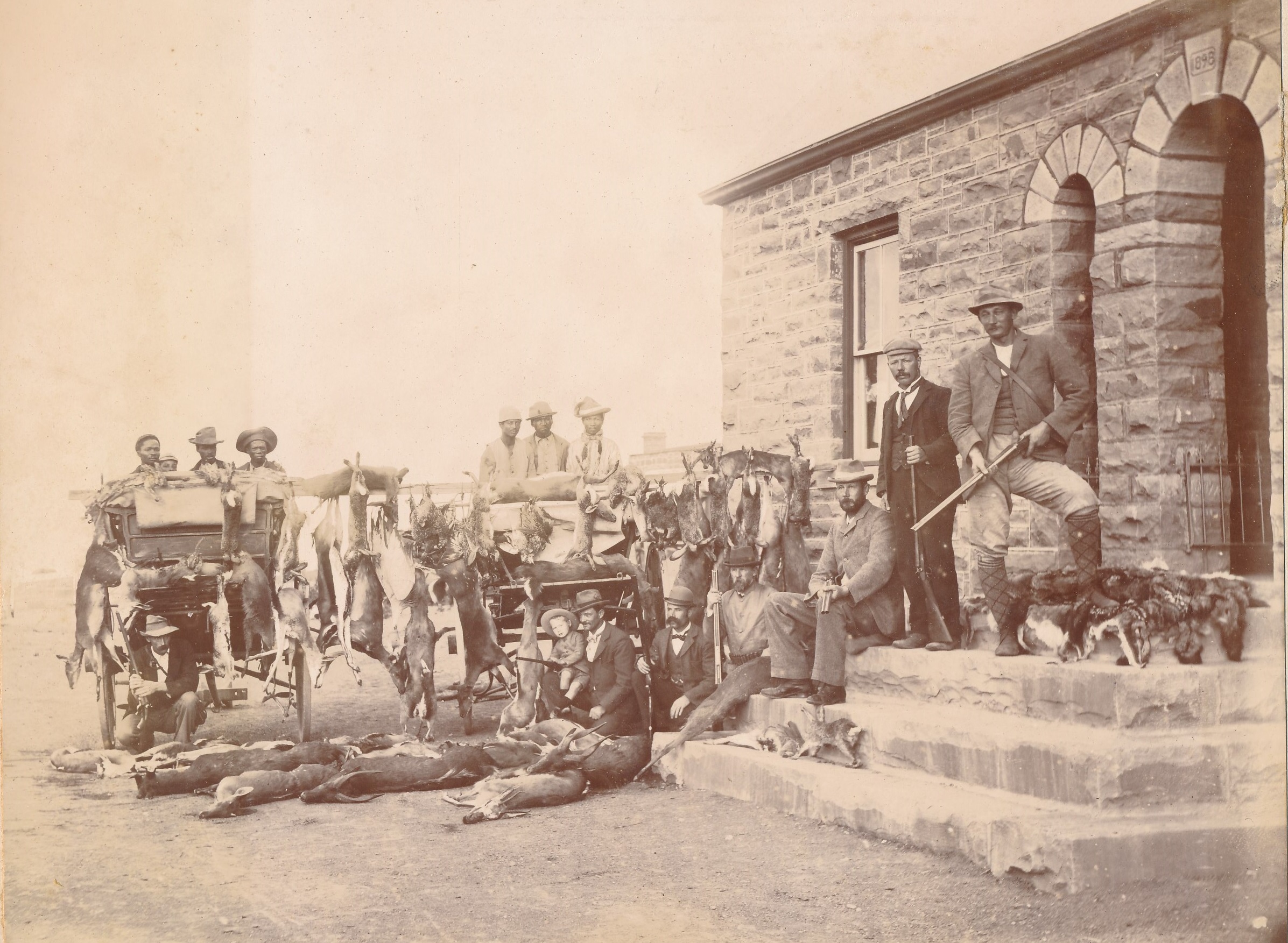 Marsh, Arthur, “Hunters with their catch infront of a stone house”, Cory Library and Historical Archives, accessed 29 December 2025, https://digitalarchives.ru.ac.za/s/cory/item/5749