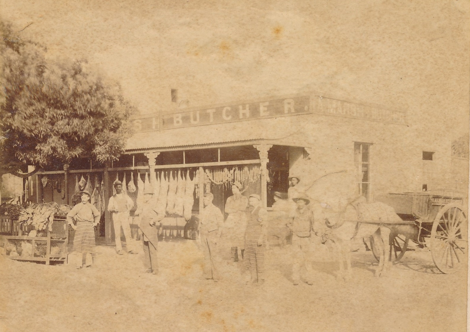 Marsh, Arthur, “People standing in front of Arthur Marsh's butchery”, Cory Library and Historical Archives, accessed 29 December 2025, https://digitalarchives.ru.ac.za/s/cory/item/5811