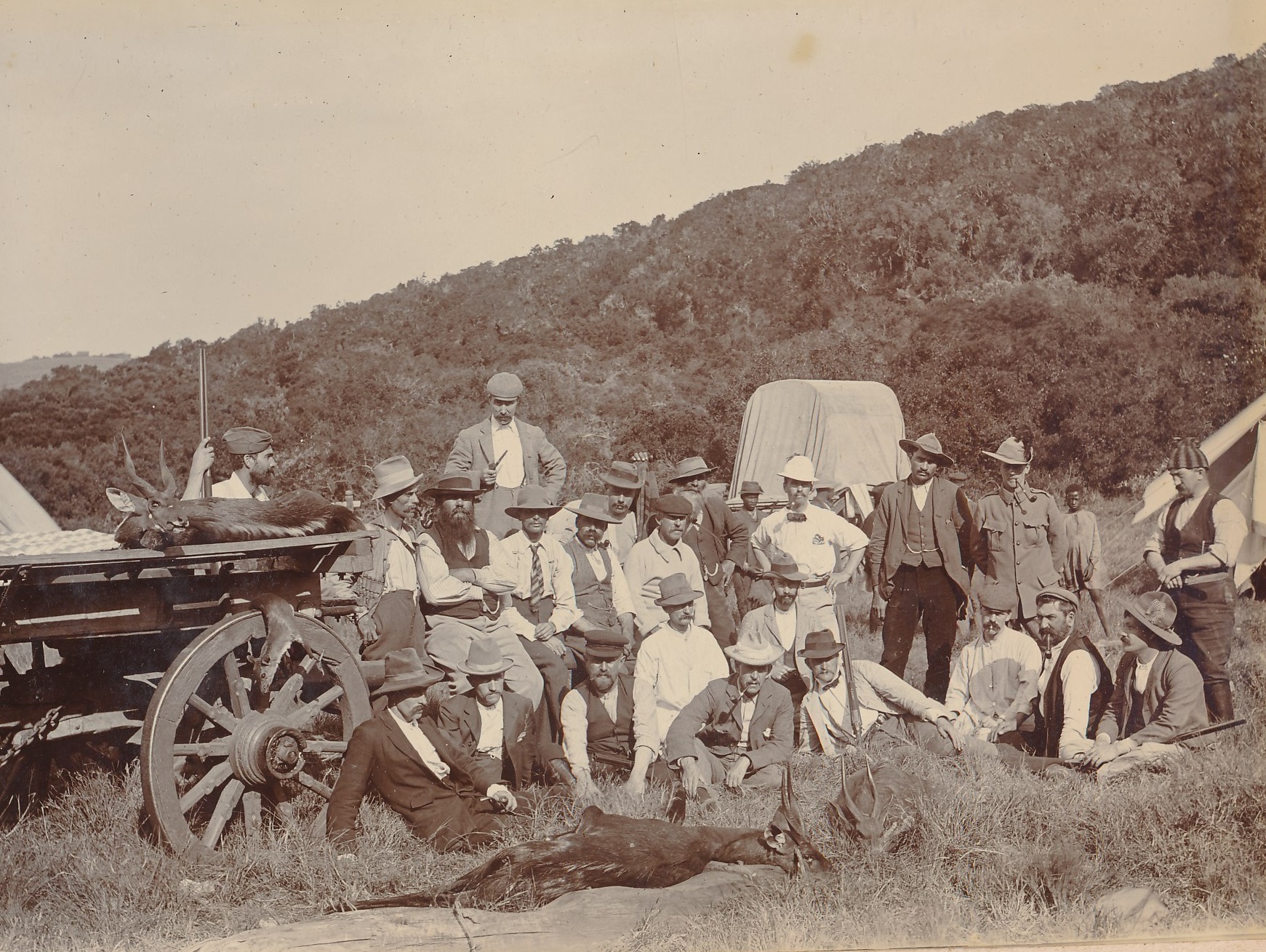 Marsh, Arthur, “Hunters sitting next to an ox wagon with their catch”, Cory Library and Historical Archives, accessed 28 December 2025, https://digitalarchives.ru.ac.za/s/cory/item/5835