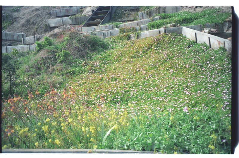 - Steep hill behind house. Dysphyma crassifolia - planted by her to check erosion of soil after heavy rain.