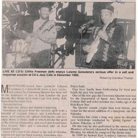 - Photocopied article from the newspaper The Daily Dispatch about Lulama Gawulana, a jazz musician performing at CD's Jazz Cafe