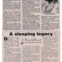 - Photocopied article from the newspaper The Daily Dispatch about Miriam Makeba, a jazz musician