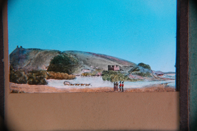 - Photograph of a water colour by L. Russel, showing Fort Frederick, and the Block House guarding the Baakens River crossing.