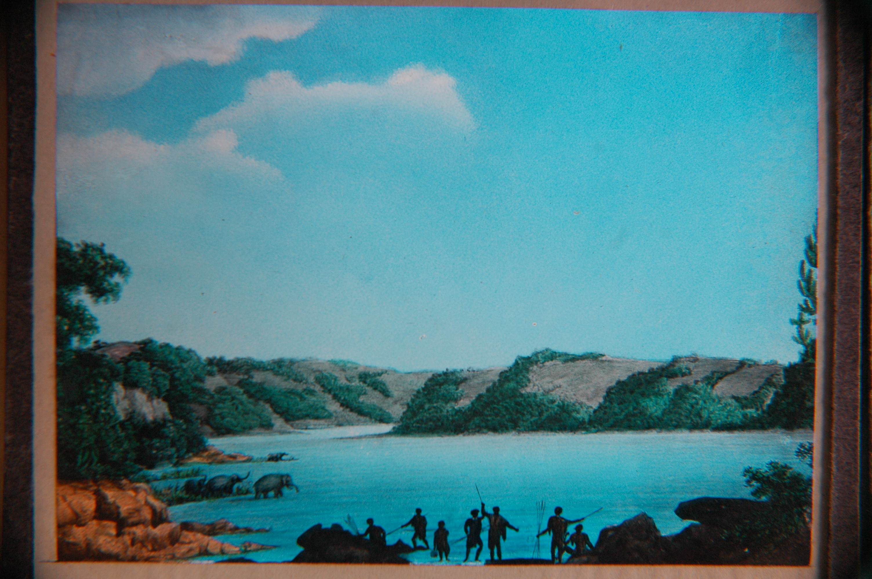 Xhosa people hunting elephants in the Great Fish River (Sketch by an officer in 1840)