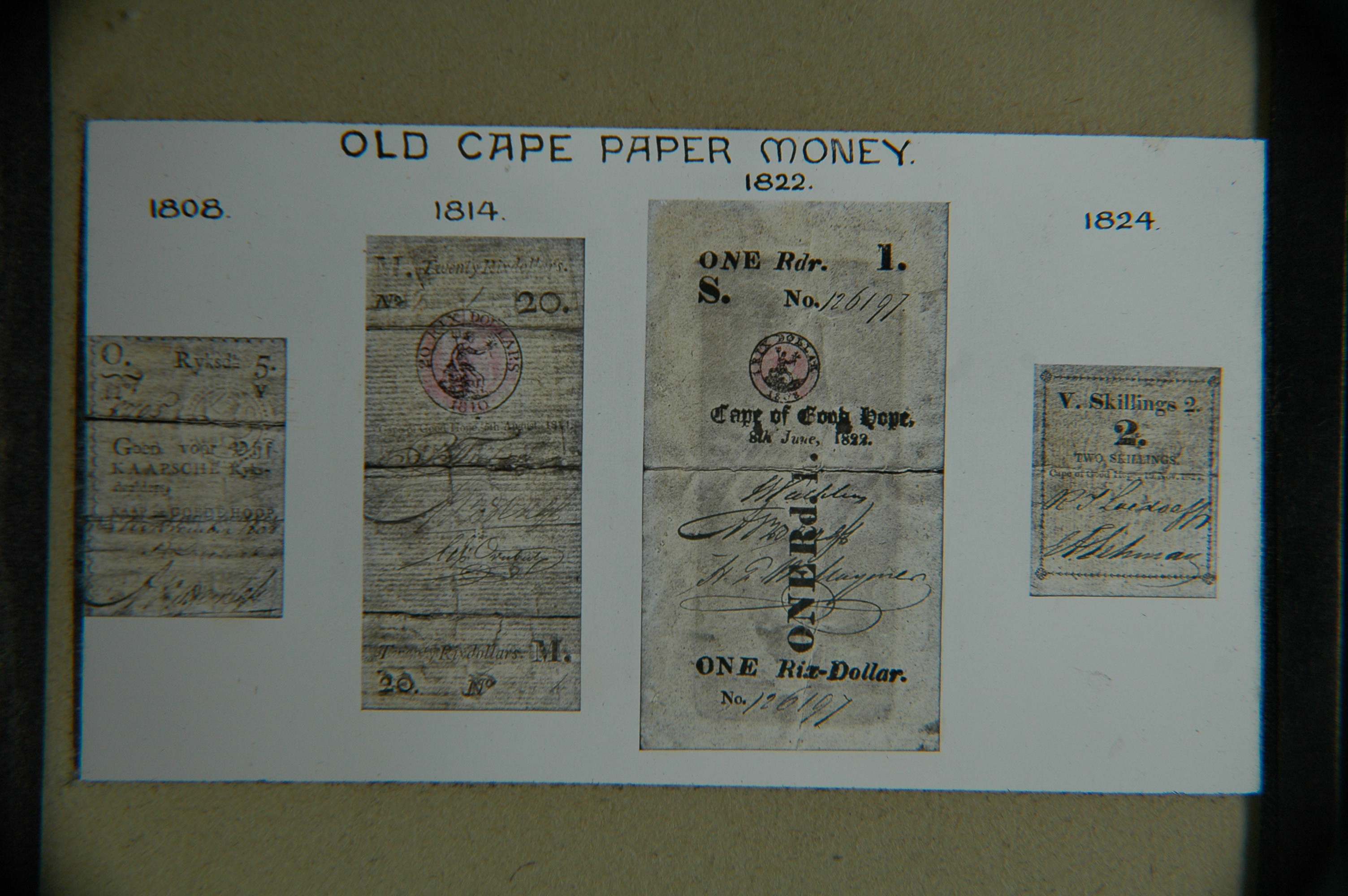 George Edward Cory, Sir (1862-1935) and Greaves, Duncan (photographer), “Old Cape paper money (front view)”, Cory Library and Historical Archives, accessed 29 December 2025, https://digitalarchives.ru.ac.za/s/cory/item/6365