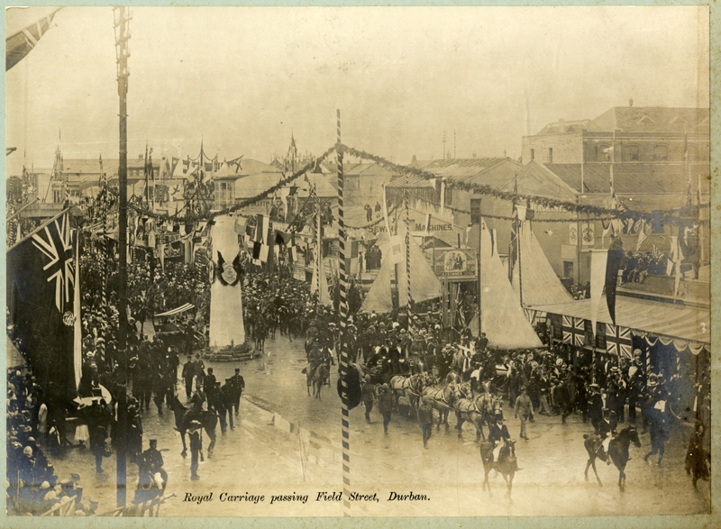 “Royal Carriage passing Field Street, Durban”, Cory Library and Historical Archives, accessed 29 December 2025, https://digitalarchives.ru.ac.za/s/cory/item/6596