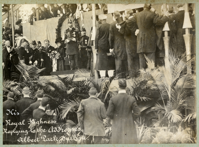 “His Royal Highness replying to the addresses given in Albert Park, Durban”, Cory Library and Historical Archives, accessed 29 December 2025, https://digitalarchives.ru.ac.za/s/cory/item/6608