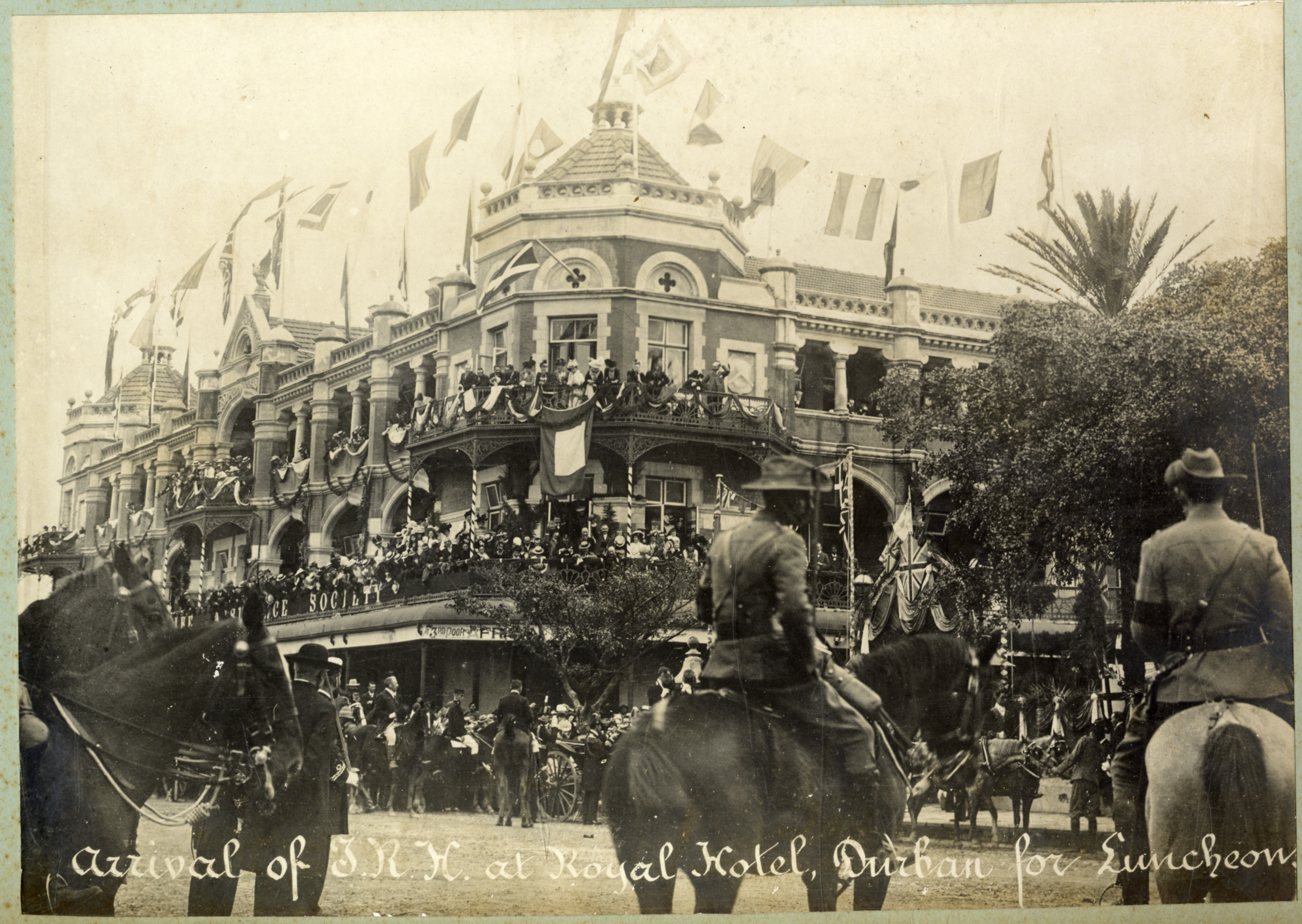 “Arrival of Their Royal Highnesses at Royal Hotel in Durban for luncheon”, Cory Library and Historical Archives, accessed 28 December 2025, https://digitalarchives.ru.ac.za/s/cory/item/6610